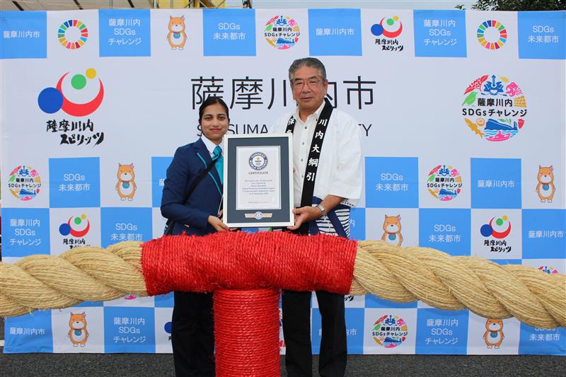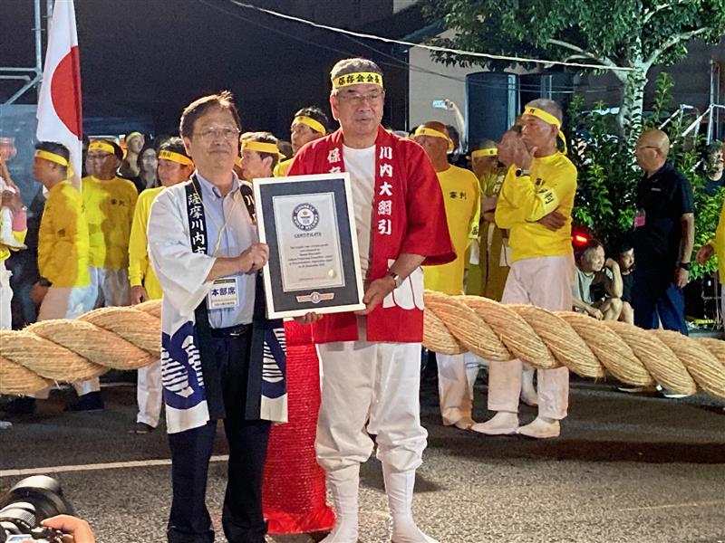 国の重要無形民俗文化財指定記念「川内大綱引」ギネス世界記録™挑戦「綱を運ぶ最大のパレード」は、ギネス認定員立ち会いの下、782人が一斉に綱を担ぎ、100メートル以上移動させることに成功し、ギネス世界記録™に認定されました。
